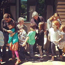 On the last day of school, Elementary and Middle School teachers and the graduating Eighth Graders line up to offer a goodbye hug, high-five, or handshake to students as they leave for the summer.